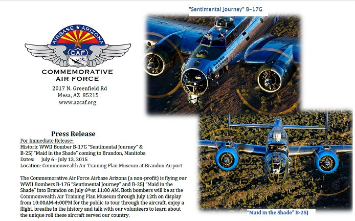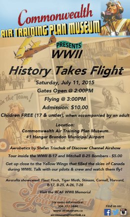 Free Open House 10am to 4pm at the Commonwealth Air Training Plan Museum (Hangar #1, Brandon Municipal Airport) Check out the RCAF WWII Memorial and